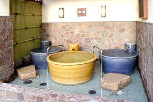 一人でのんびりと露天風呂を堪能するならやっぱり壺風呂。素肌にあたる感触も心地よい信楽焼の壺。